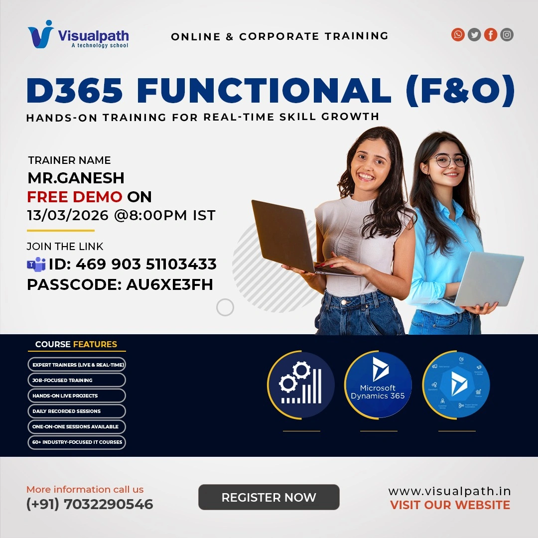Visualpath is one of the top Microsoft D365 Finance & Operations training institutes in Hyderabad.